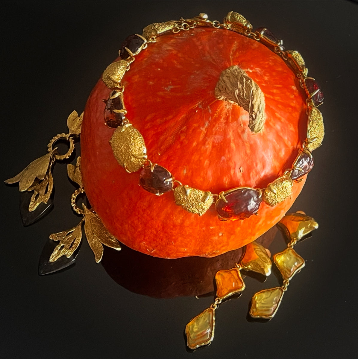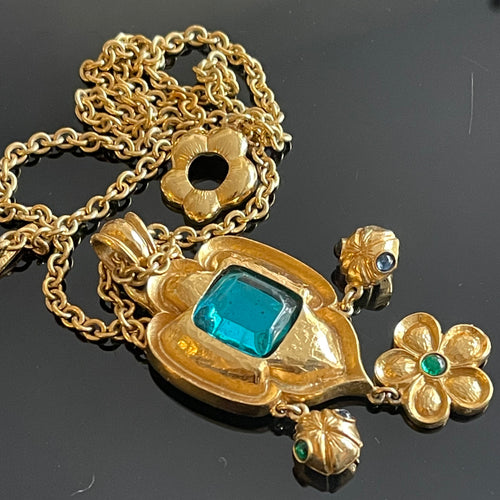 Sublime et rare collier vintage couture signé Kenzo métal doré et résine de couleur
