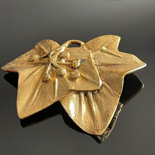 Céline T.Saxe, grande broche vintage feuille en métal doré