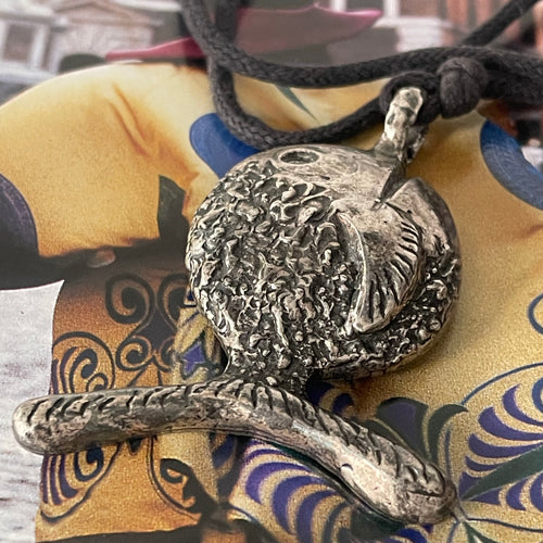 RAND Paris, grand pendentif poisson en métal argenté, années 90