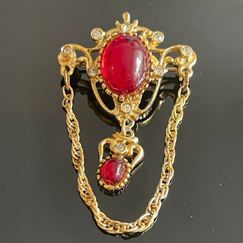 Sublime broche ancienne Marcel Boucher métal doré et pierres de couleur