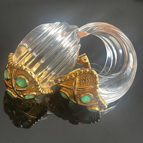Sublimes boucles vintage en résine doré et cabochons de verre signées Satellite