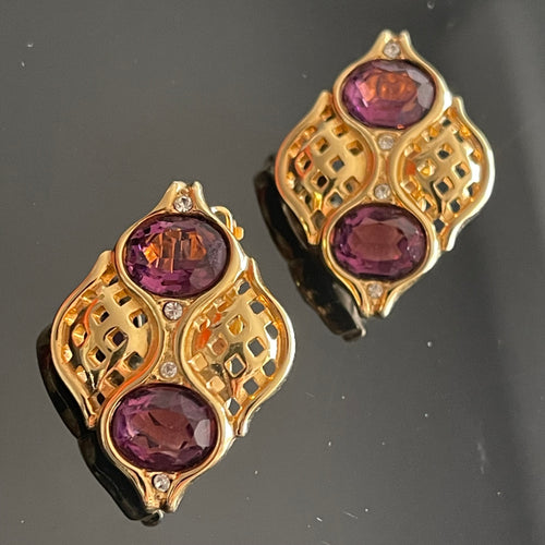 Sublimes et rares boucles YSL en métal doré et résine effet givré