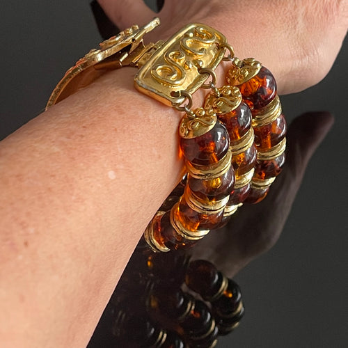 Christian Dior, rare collier vintage en lucite et métal doré, années 70