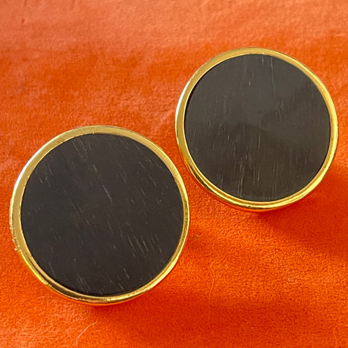 YSL, grosses boucles rondes en métal doré et bois précieux
