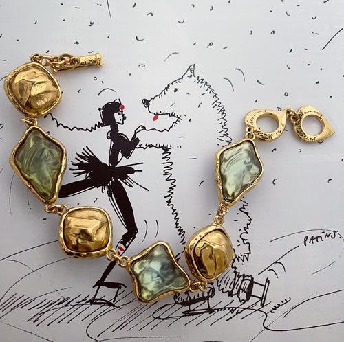YSL, sublime bracelet métal doré et résine bleue givrée
